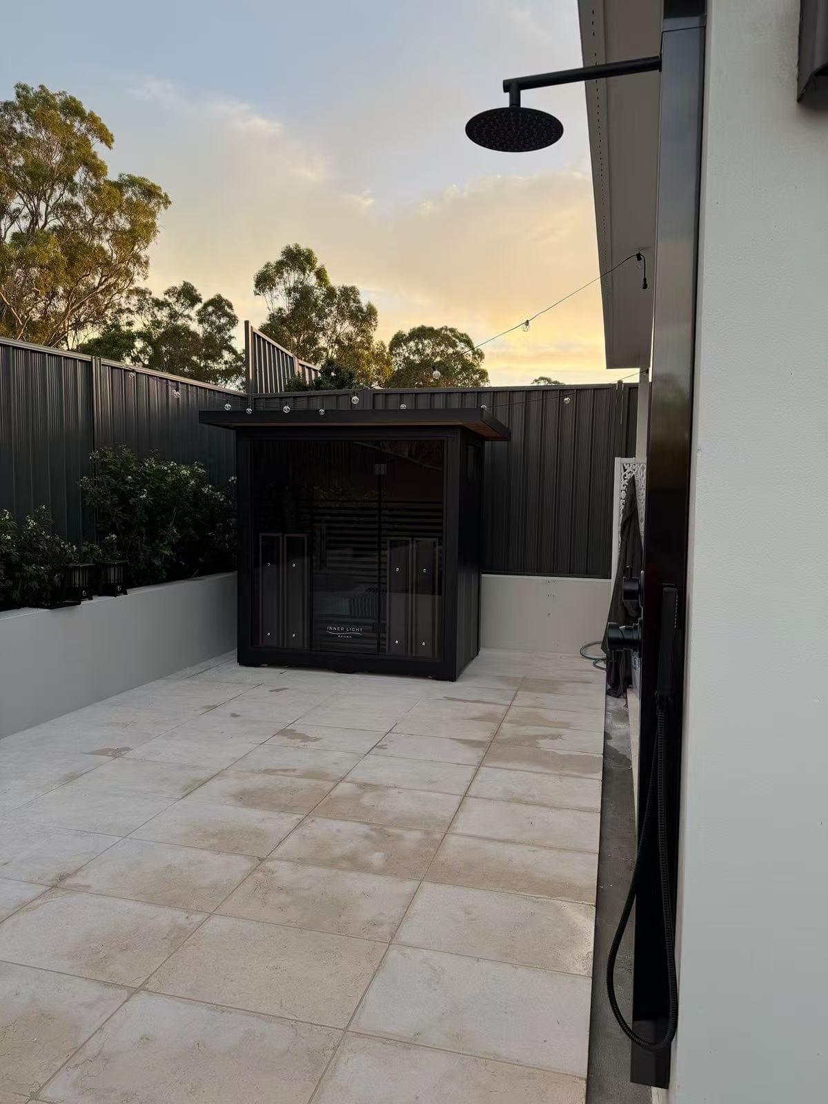 Miami Black is HydraJet's ideal outdoor shower. 316# stainless steel panel. 10 year NO RUST G'tee. Hot/cold mixers, showerhead + handwand & fixings for freestanding or wall mount.